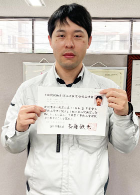 同期とは何でも言える仲で、プライベートでも一緖に遊びます。先輩も親切で、居心地が良く、勉強できる環境が整っているのも魅力。2級管工事施工管理技士を取得したので1級管工事施工管理技士の取得をめざして勉強中です!